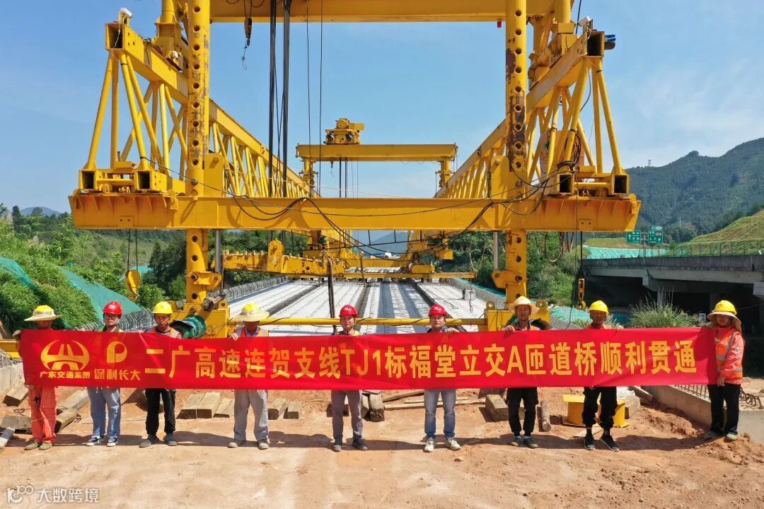 二广高速公路连山至贺州支线起点在连山县福堂镇东北侧与二广高速公路形成 T 形交叉,终点位于粤桂两省分界,是广东二广高速与广西永贺高速联络线的一段,线路总长约6.5公里。保利长大承建的二广连贺高速TJ1标路线总长为3.825公里,主要工程包括主线桥梁5座以及匝道桥7座。