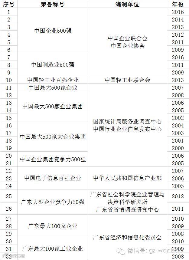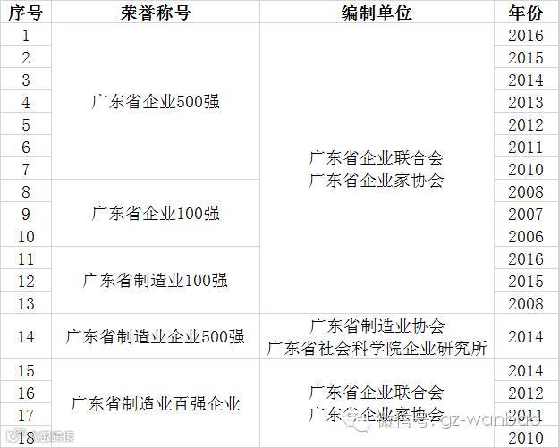 2016年8月3日,广东省企业联合会、广东省企业家协会发布了2016年广东省企业500强及广东省民营企业100强、广东省制造业100强、广东省服务业100强、广东省流通业100强行业百强榜单。