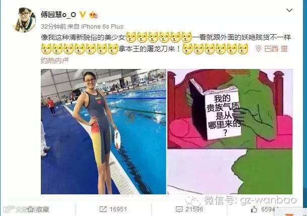 昨日里约奥运会女子仰泳半决赛后记者对傅爷的采访,可谓“金句”不断,再配上搞怪的表情,瞬间萌化无数国人……