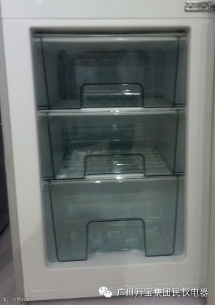 冰箱的冷冻室,含有三个承重能力强的透明材质做的大抽屉。可以容纳更大、更重的食材。透明设计,方便食物的拿取。