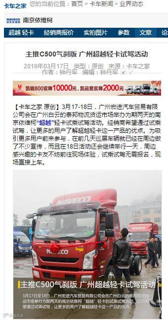 在2015年不少轻卡厂家陆续推出了2.8排量的气刹版产品,南京依维柯为应对市场的需求,也推出了相应的产品,由于新产品面世时间不久,用户对新车的认识并不多,广州宏进经销商借着这次试乘试驾的机会,让用户对新产品有一个清晰的认识。