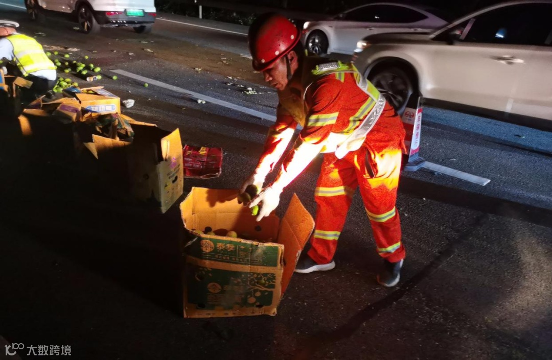 4月29日晚上20点30分,广韶高速清远段一辆运输水果的货车发生事故,大量水果倾洒路面,公司所属广韶养护项目部接到任务通知后,立即组织12名、2组应急队员赶赴现场,1组负责道路封闭,1组负责路面清扫,仅用一个多小时就恢复了道路通行。