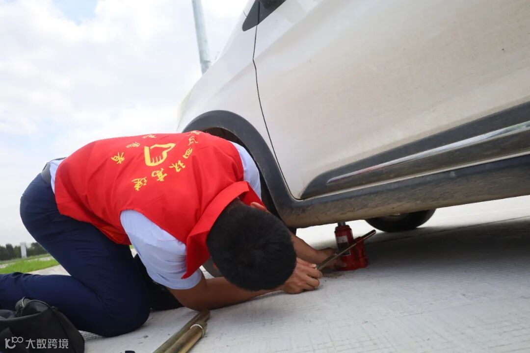 志愿者们还现场化身修车小能手、宣传小能手,帮助司乘人员更换轮胎,提醒司乘注意行路安全等,用真情、热心温暖司乘人员,创造畅舒美安的通行环境。