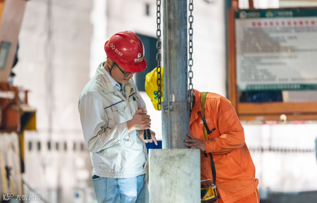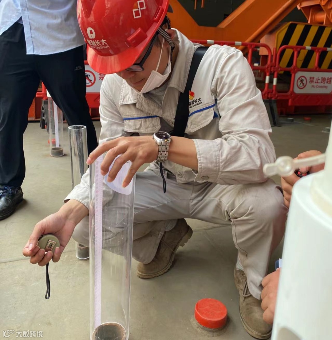 吴启霖量测排气孔内混凝土液面高度,校核混凝土尾方