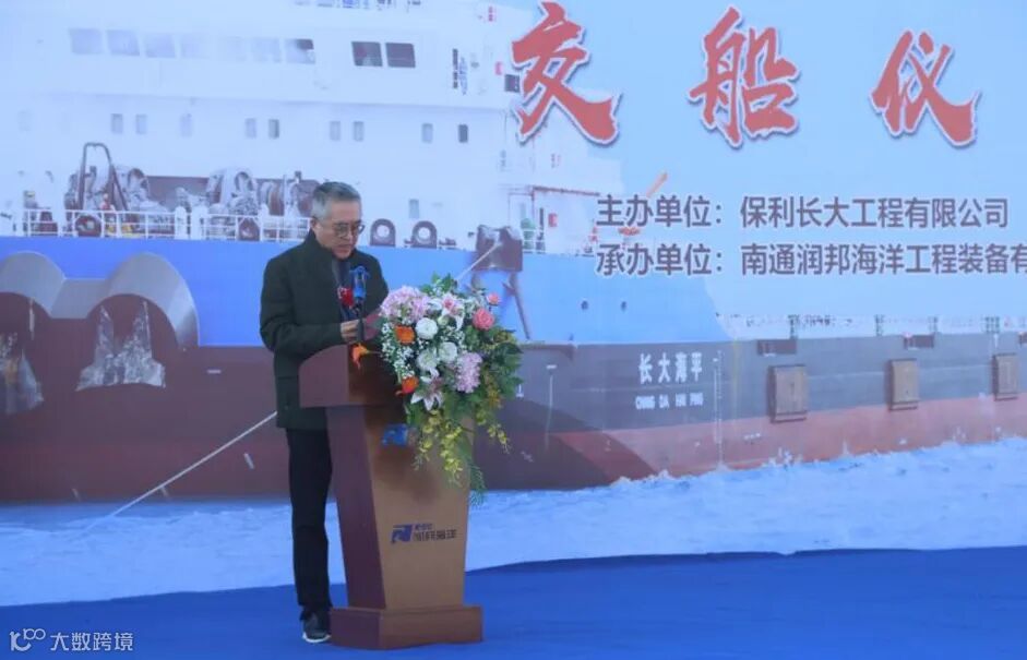 保利长大、江苏启东海事处、中国船级社启东办事处,海上风电行业相关设计院、施工方及设备商等单位负责人共同出席交船仪式。