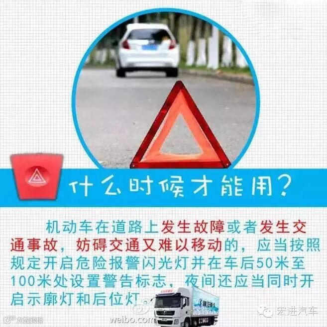 宏进汽车危险报警闪光灯,就是俗称的双闪灯,日常行车中有的驾驶员并不知道哪种情况下才应该使用,甚至有的驾驶员上了高速公路就开双闪灯,来学习一下吧。