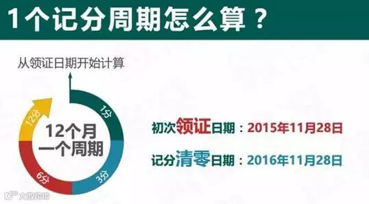 解读:《机动车驾驶证申领和使用规定》第五十五条规定:道路交通安全违法行为累积记分周期(即记分周期)为12个月,满分为12分,从机动车驾驶证初次领取之日起计算。