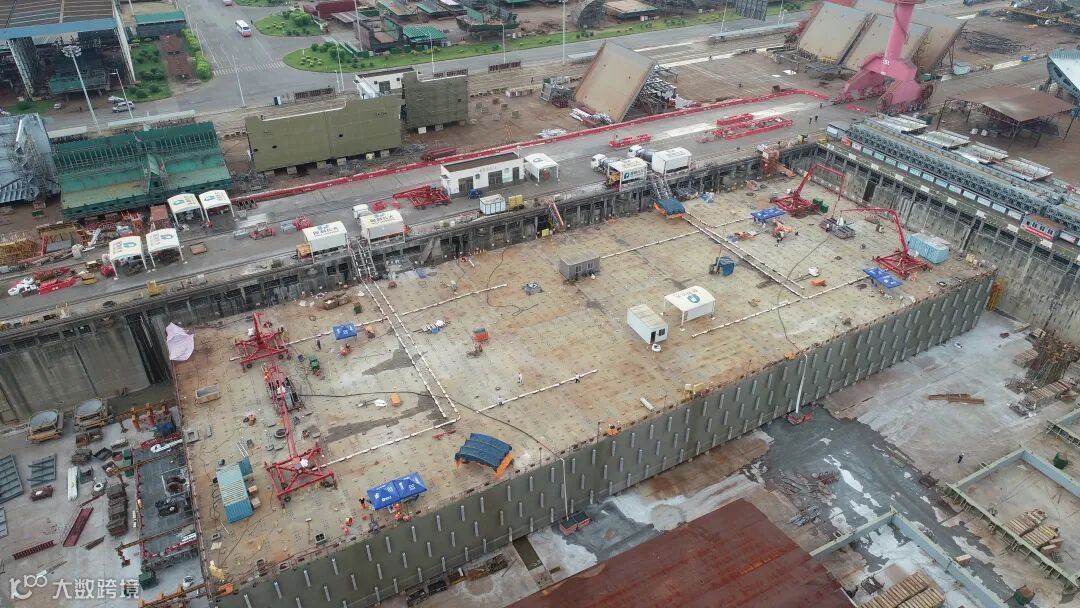E28管节是深中通道沉管隧道东端第5节超宽变宽非标准管节,长123米,高10.6米,横断面由46.22米逐渐变宽至49.68米,浇筑完成后重量达6.2万吨。