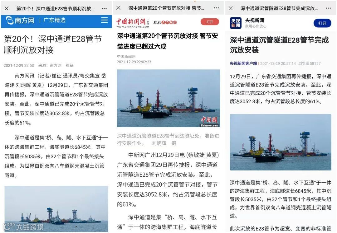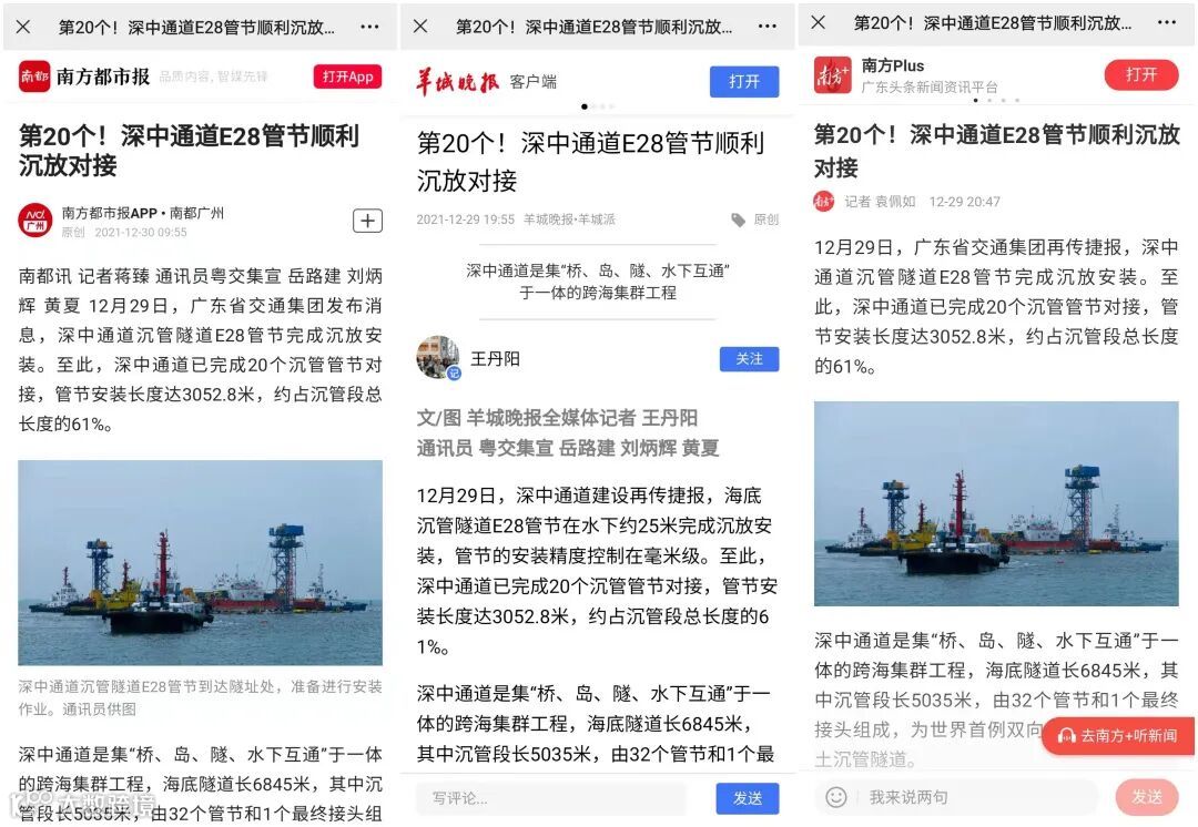 12月29日,保利长大承建的粤港澳大湾区超级工程——深中通道沉管隧道E28管节完成沉放安装。至此,深中通道已完成20个沉管管节对接,管节安装长度达3052.8米,约占沉管段总长度的61%。