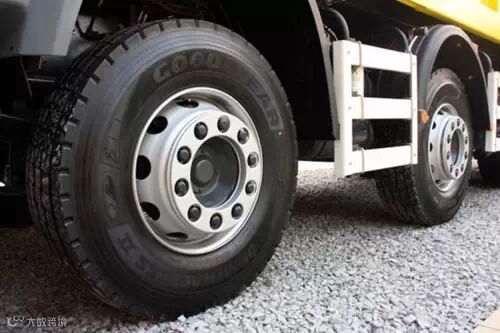 今天这里特别介绍下车辆转向桥轮胎。一般情况下转向桥轮胎与驱动桥轮胎都是同规格的产品,而在欧洲,中国香港,台湾等地一些车主为了追求车辆高速行驶稳定性,转向桥采用了385/65R22.5超宽端面轮胎,当然要使用这样的轮胎所以配套的轮辋也是特制的钢圈,如使用普通造型钢圈会导致转向时车轮摩擦悬挂这样的尴尬发生。