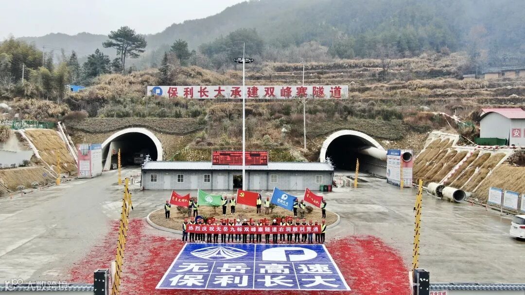 1月14日,保利长大承建的安徽无岳高速项目最长隧道——双峰寨隧道右线,顺利实现贯通,成为全线第一条贯通的特长隧道。