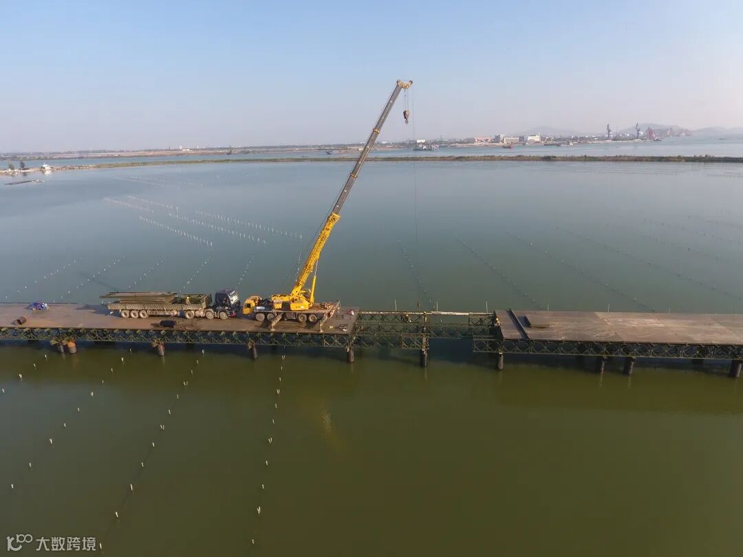 11月28日,随着最后一块桥面板铺设完成,阳江海溪公路项目阳江港特大桥栈桥海中段及骑鳌岛段顺利合龙,拉通了通往大桥主墩的生命通道,为主体工程施工创造有利条件。