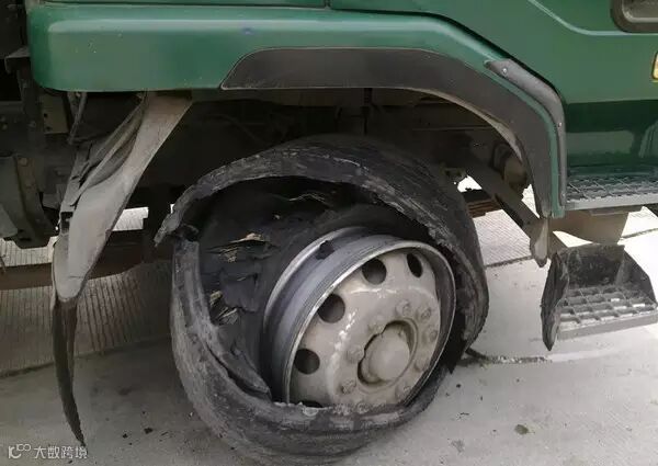 后双桥车型和半挂车型由于轮胎数量较多,爆胎后不容易发现,继续行驶后破损的轮胎就会与完好的轮胎相互摩擦起热,直至另外一个轮胎也发生爆胎。双胎爆胎后轮毂就会与地面接触摩擦产生大量火花,继而引燃破损的轮胎。