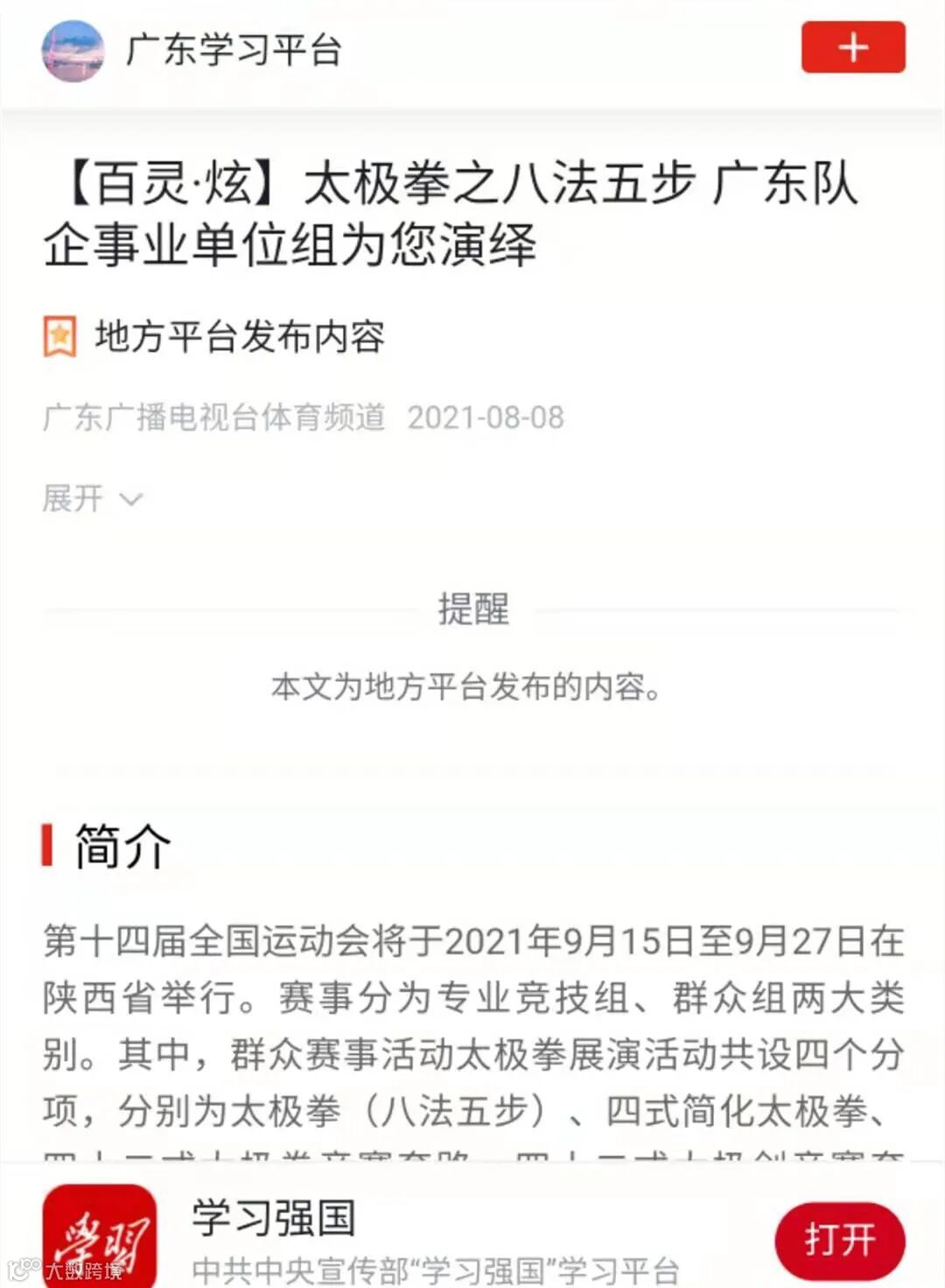 根据大赛规则,第十四届全国运动会群众展演项目均采用线上参赛、线下评审方式举行,同时设置了通过网络投票评选“最佳人气奖”的环节。以高分代表广东企事业单位参加全运展演,这是保利长大以铁军精神打造积极向上的企业文化、以工匠精神雕琢精益求精工程文化的体现。
