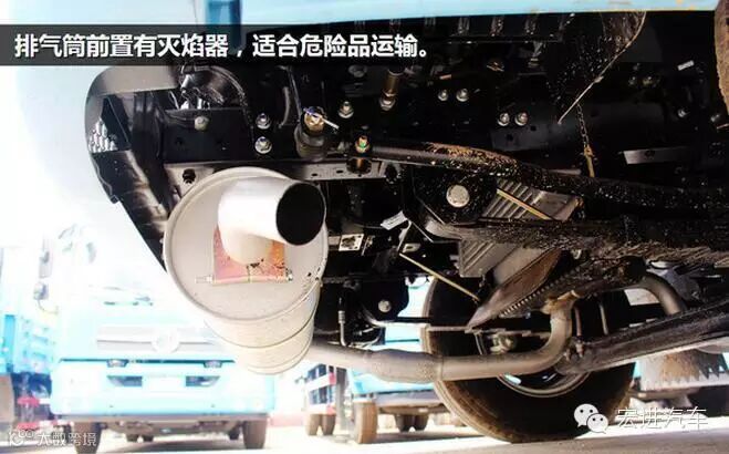 这款车拥有正规危险品公告,排气筒经改装后前置,并配有灭焰器,较适合于危险品运输。