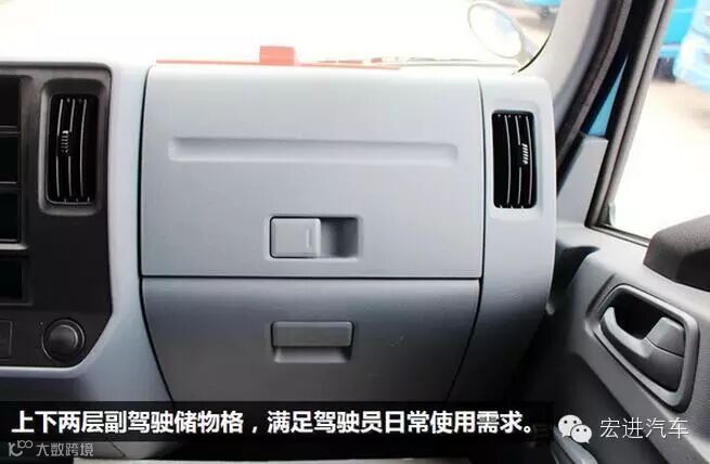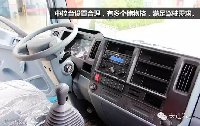 中控台设置合理,有多个储物格,充分满足物流运输需求,客户可选装空调。