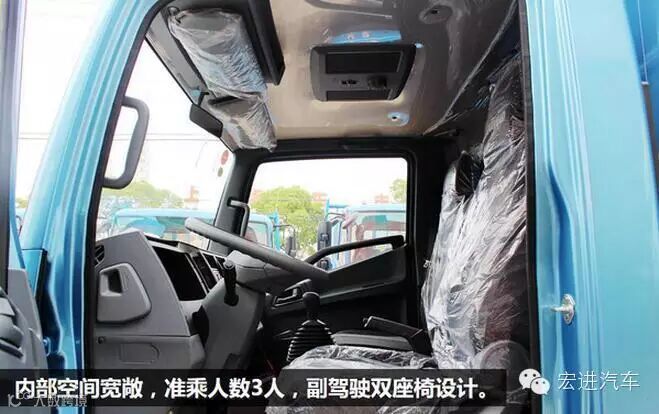 驾驶室内部空间宽敞,准乘人数3人,副驾驶采用双座椅设计,具有较高的驾驶舒适度。