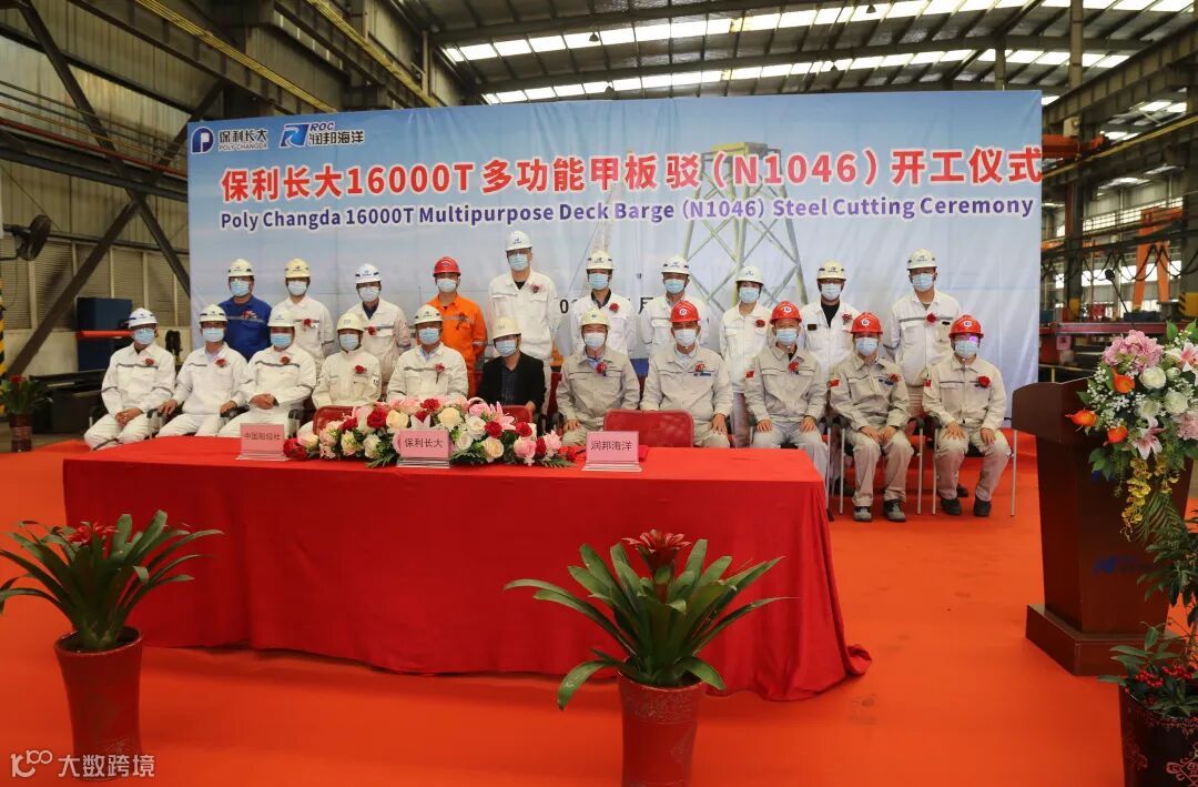 4月28日,保利长大工程有限公司投资建设的16000T多功能甲板驳在江苏南通润邦海洋船厂开工,保利长大总经理王成皿宣布甲板驳正式开建。