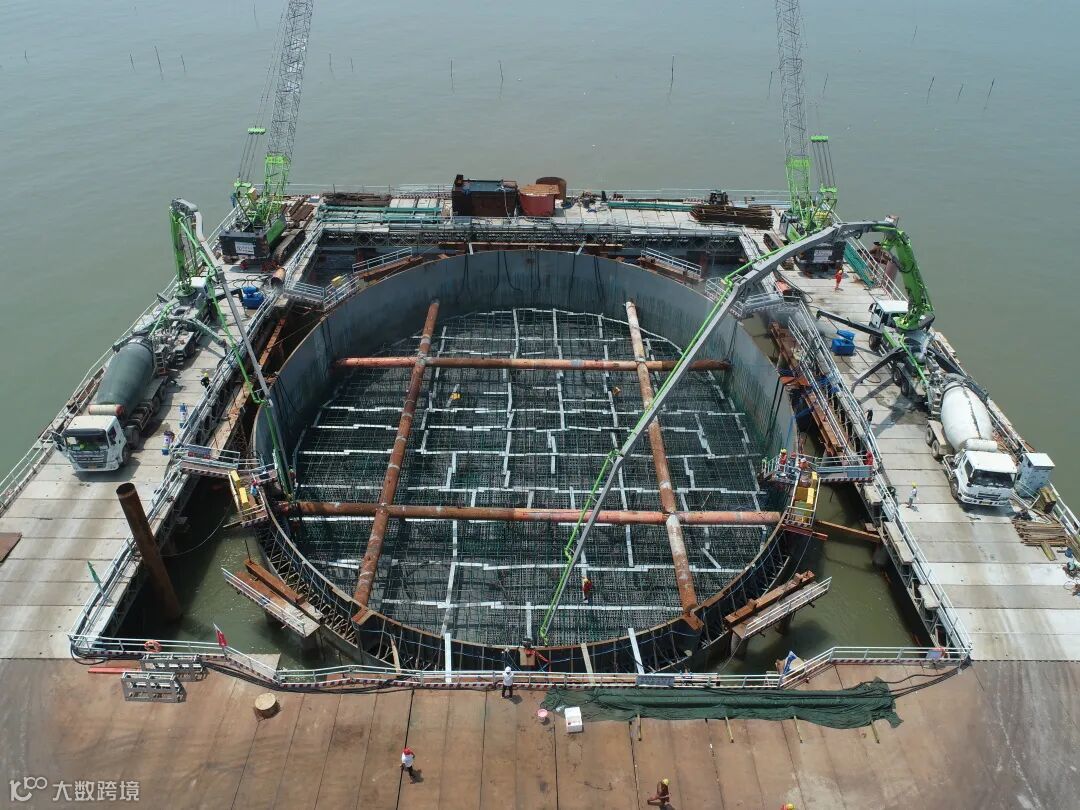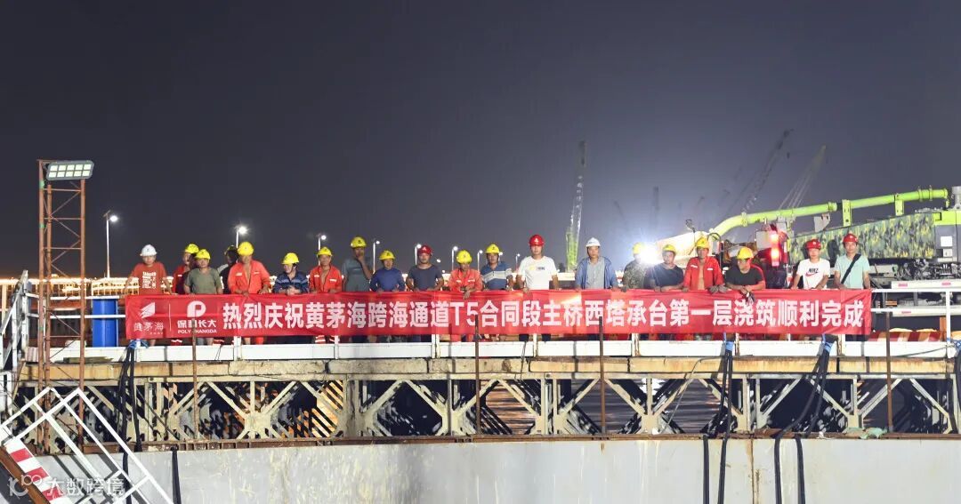 经过100余名建设者连续50个小时的昼夜奋战,7月28日凌晨,保利长大黄茅海跨海通道T5标承建的世界最大三塔公路斜拉桥——黄茅海大桥西塔承台第一层混凝土顺利浇筑,浇筑方量约3100立方米,向上部结构塔身施工迈出坚实一步。
