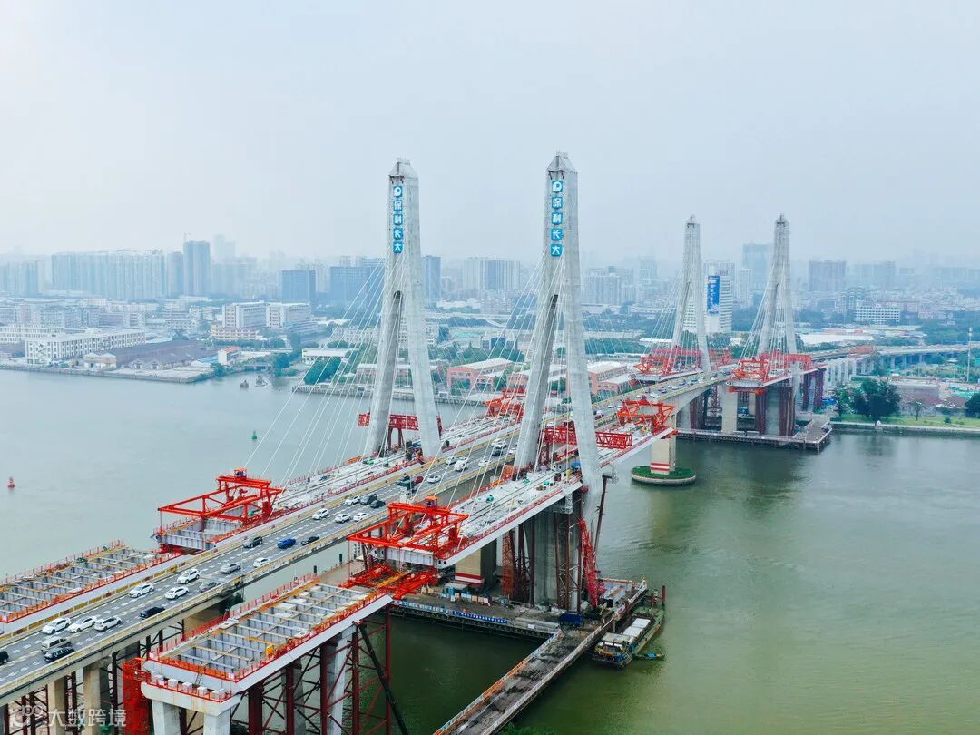 洛溪大桥拓宽工程是广州市“十三五”计划重点项目,是广州市中心区首座大跨度叠合梁斜拉桥。项目于2018年6月28日正式开工,目前正处于主桥上部构造施工和引桥桥面系施工阶段。项目主桥计划10月份合龙,全桥预计年底建成通车。