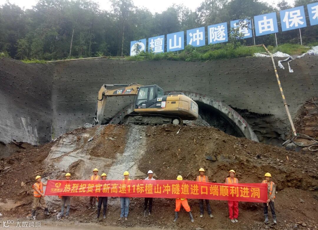 9月11日,保利长大官新高速11标檀山冲隧道官庄端左线进口正式进洞开工,项目隧道工程施工取得又一阶段性胜利。檀山冲隧道属于小净距短隧道,隧道采用三台阶留核心土法进洞。