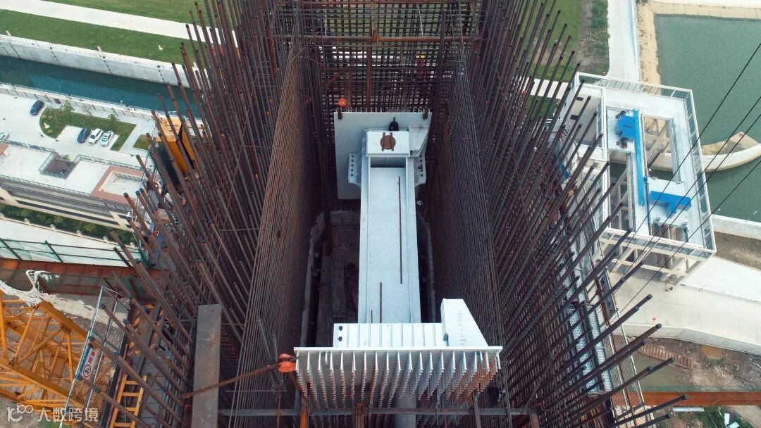 9月3日,中山西环联石湾特大桥主塔首节钢锚梁顺利安装,宣告大桥进入上塔柱斜拉索锚固区施工阶段。联石湾特大桥为2*206m双层钢桁梁独塔斜拉桥,主塔为 H 形混凝土塔,塔端锚固采用内置 “钢锚梁+钢牛腿”结构形式,共15节。首节安装重达23.6吨,采用了先吊装定位钢牛腿再吊装定位钢锚梁的施工工艺,克服了温差大、高空作业、大风等不利条件,最终达到了3mm偏差的安装定位精度。