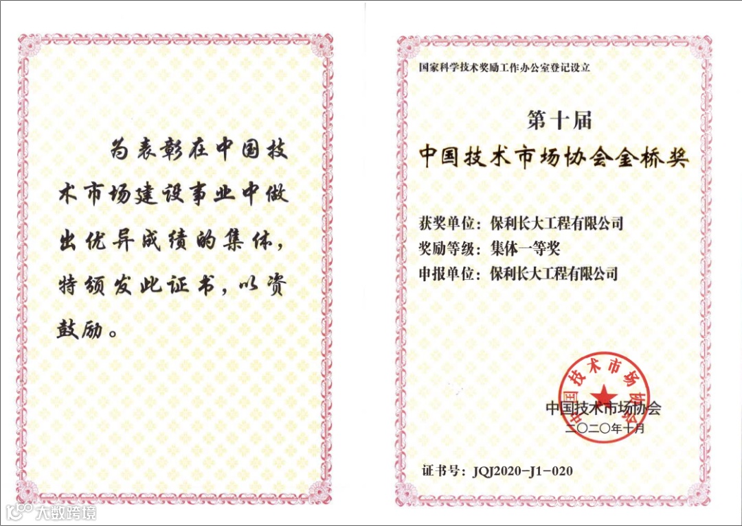 近日,第十届中国技术市场协会金桥奖表彰奖励大会在山东淄博召开,保利长大工程有限公司喜获金桥奖集体一等奖。中国技术市场协会金桥奖是经国家科学技术奖励工作办公室审定、批准设立的全国技术市场协会的最高奖项,旨在表彰奖励在技术市场建设、科技成果转移转化、技术服务促进科技进步和高新技术产业化工作中涌现的先进集体、个人和优秀转化项目,每两年评选一次,具有极高的权威性和公正性。