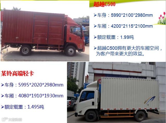 今天,为大家带来了超越C500与另一款高端轻卡的对比分析,谁更胜一筹?我们一起去看看吧!