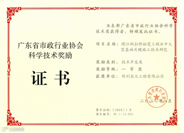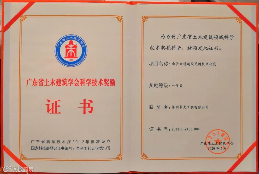 近日,保利长大喜添2项省级科学技术荣誉,所承建南沙大桥荣获“广东省土木建筑学会第十二届广东省土木工程詹天佑故乡杯奖”,洛溪大桥拓宽工程荣获“广东省市政行业协会科学技术一等奖”。