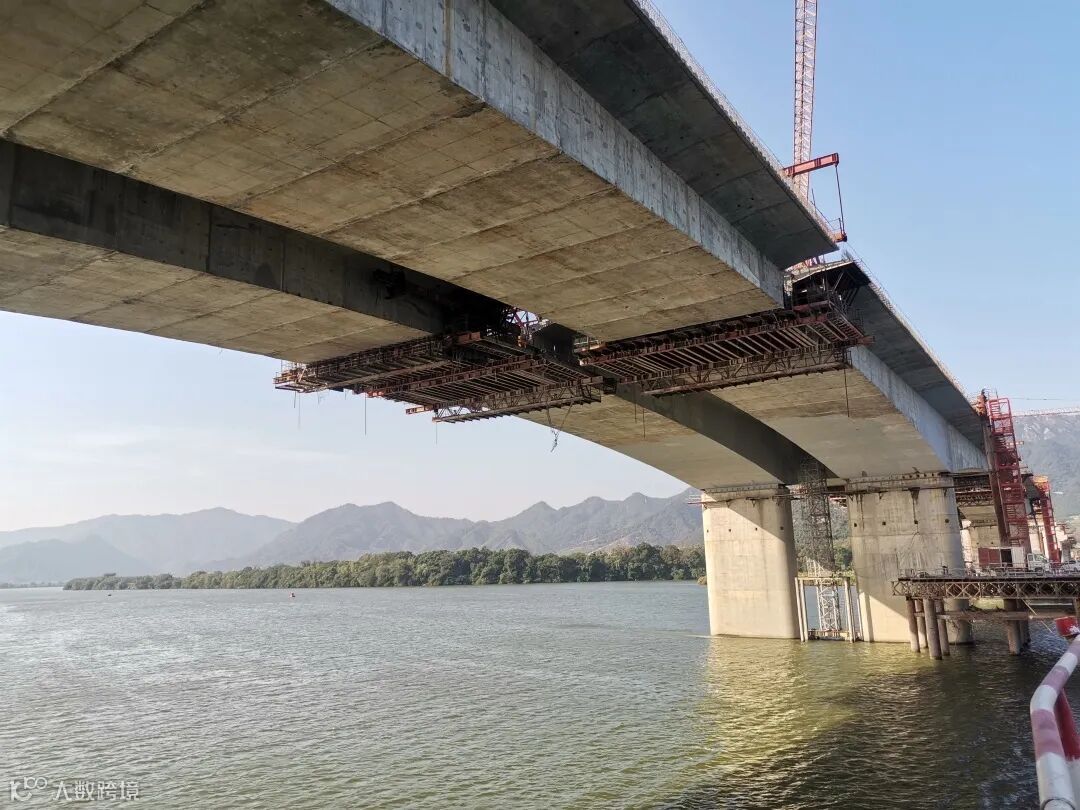 11月9日,北江四桥首个合龙段顺利完成浇筑。合龙段施工采用吊架施工工艺,以型钢及平面钢模为吊架的主要框架,精轧钢作为承重结构,侧模及内模均采用木模,具有施工操作方便、质量控制点少、安全风险低等特点,为后续拆模工序提供了便捷。目前,北江四桥东岸已完成下构90%,梁板吊装完成50%,主桥挂篮施工完成95%,整体已全面进入收尾阶段,为2021年完工打下坚定基础。