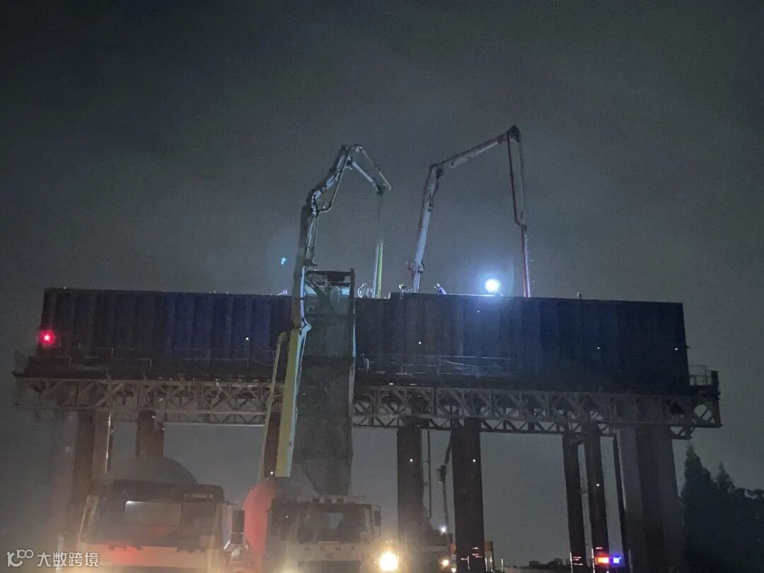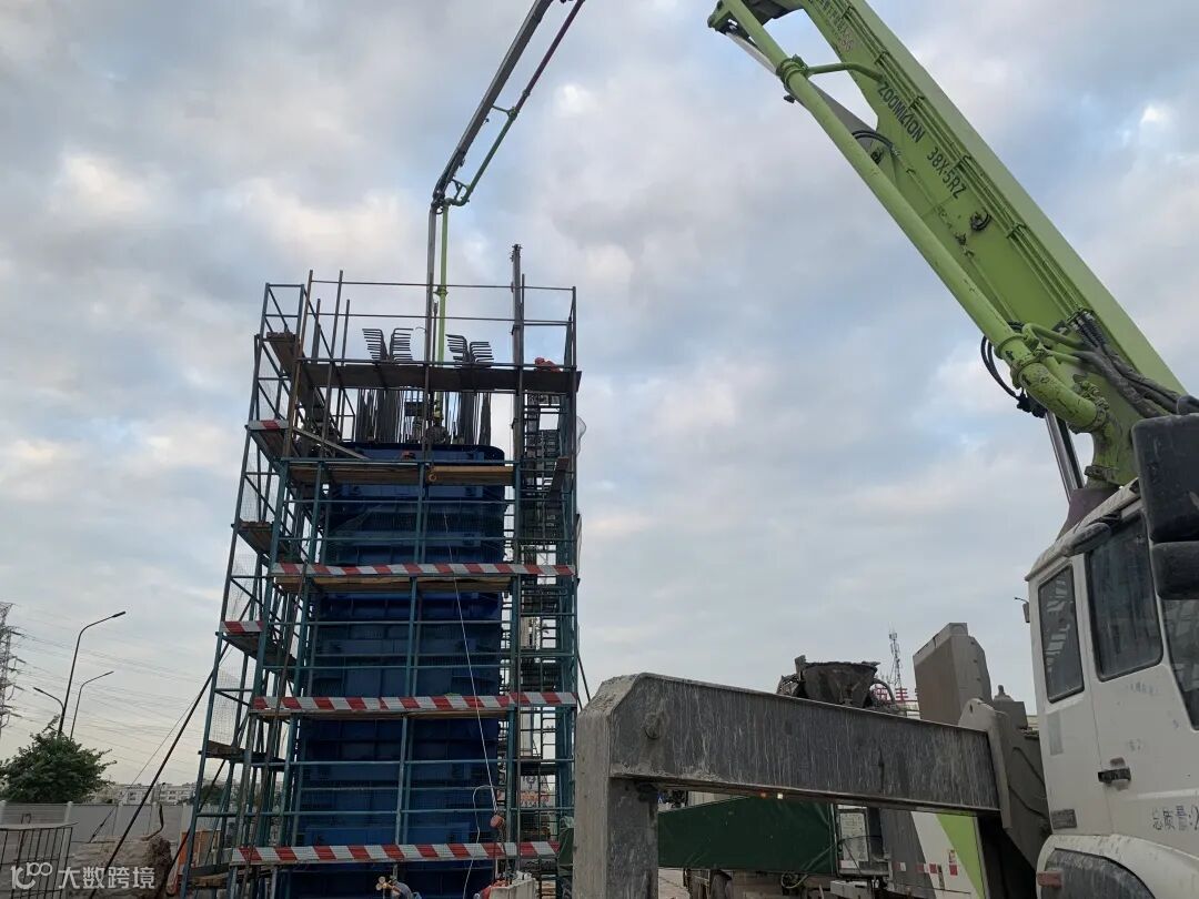 11月10日 ,随着最后一车混凝土的顺利泵入,中山西环高速A段拱北河大桥21#水上大门架盖梁顺利完成混凝土浇筑,拉开了标段内水上大门架墩盖梁的施工序幕。