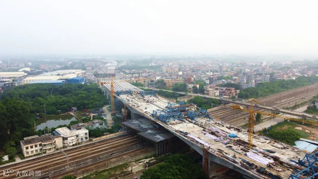 仙村特大桥全长1734米,上部构造为预应力混凝土连续刚构,采用挂篮悬浇施工方式。大桥横跨广深铁路,受施工许可办理难、铁路运行安全保障难等因素制约,极大增加施工组织难度。