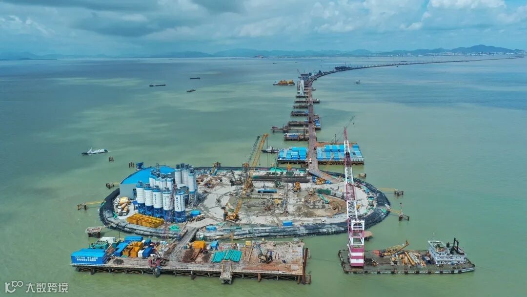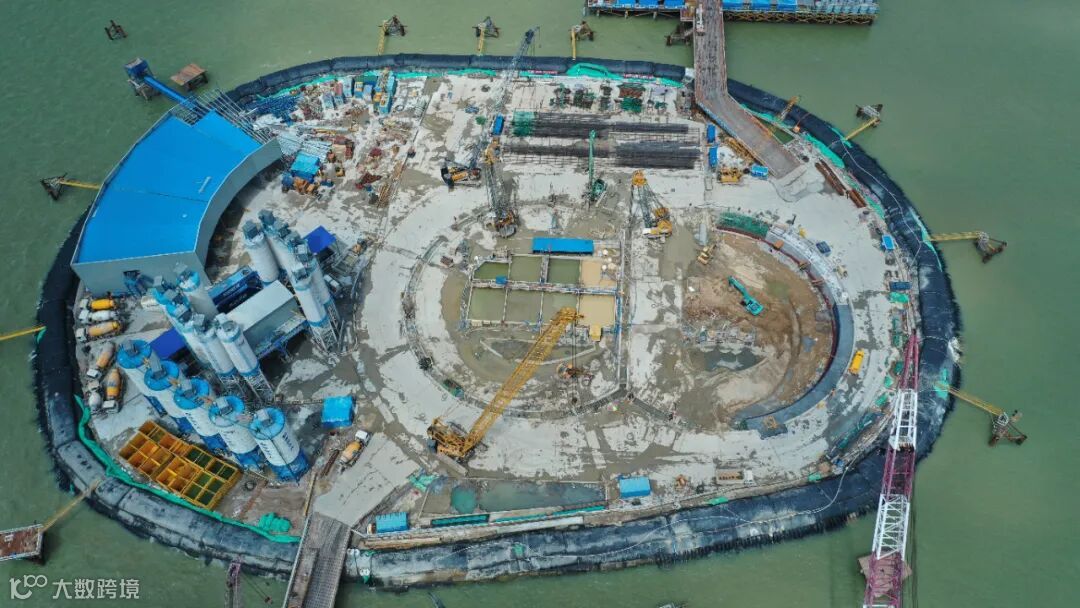 伶仃洋大桥西锚碇是目前世界在建最大海中锚碇,高38.51米、宽83米、长61.14米,建成后重量可达100万吨,其作用相当于秤砣,是承受悬索桥上部结构拉力的基础。