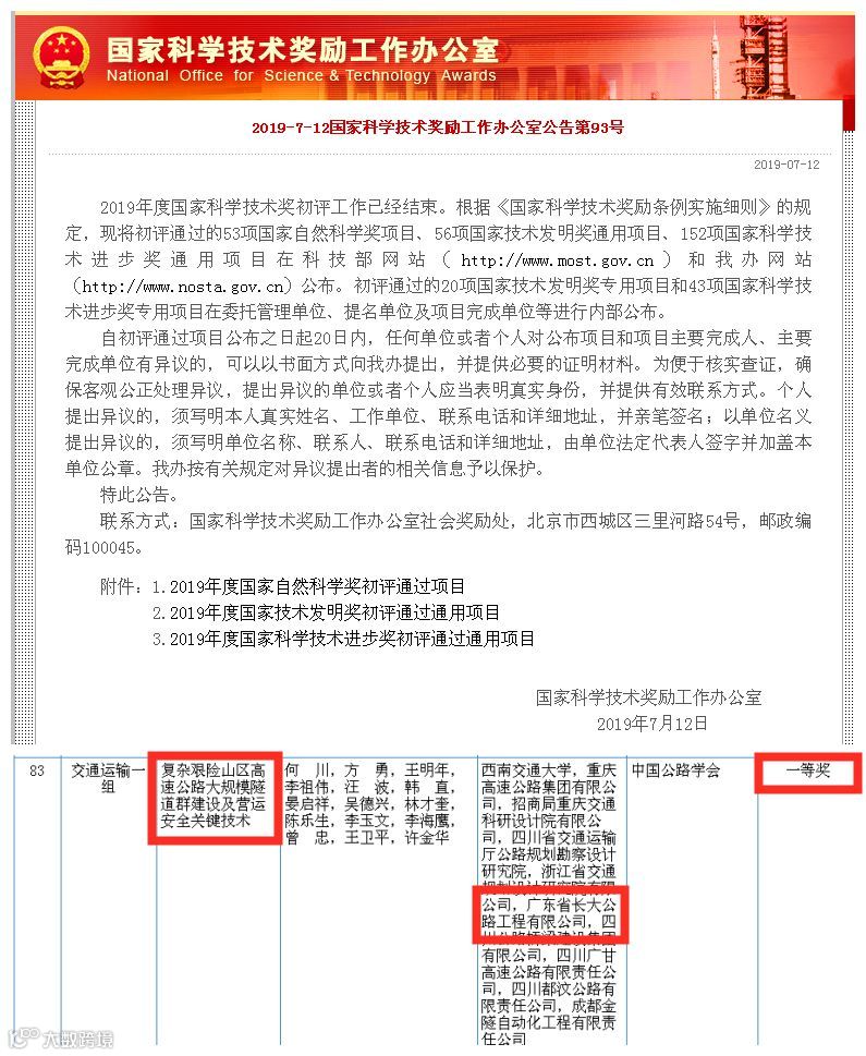 7月12日,国家科学技术奖励工作办公室网站公布2019年度国家科学技术奖初评通过项目。其中包括53项国家自然科学奖项目、56项国家技术发明奖通用项目、152项国家科学技术进步奖通用项目。