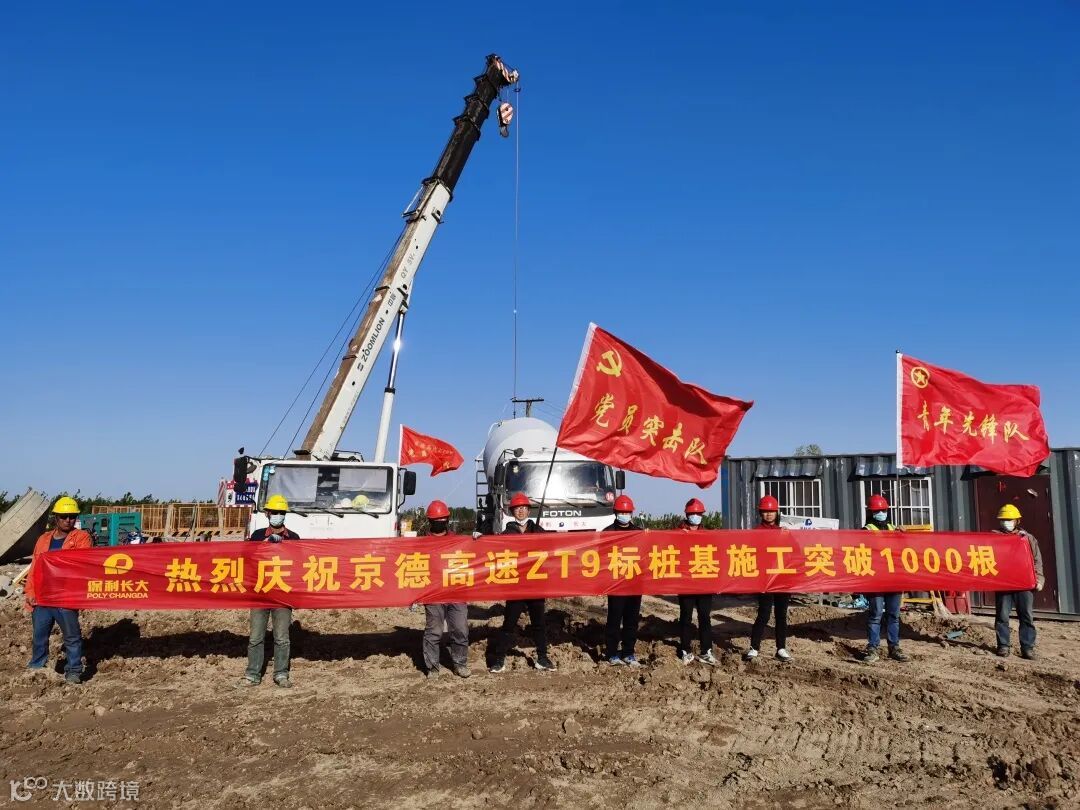 4月22日,京德高速ZT9标文安洼2号特大桥147#桩基成功浇筑,桩基完成量突破1000根,累计完成量超过70%,党建引领工程建设成效初显,为桥梁上部结构施工奠定坚实的基础。
