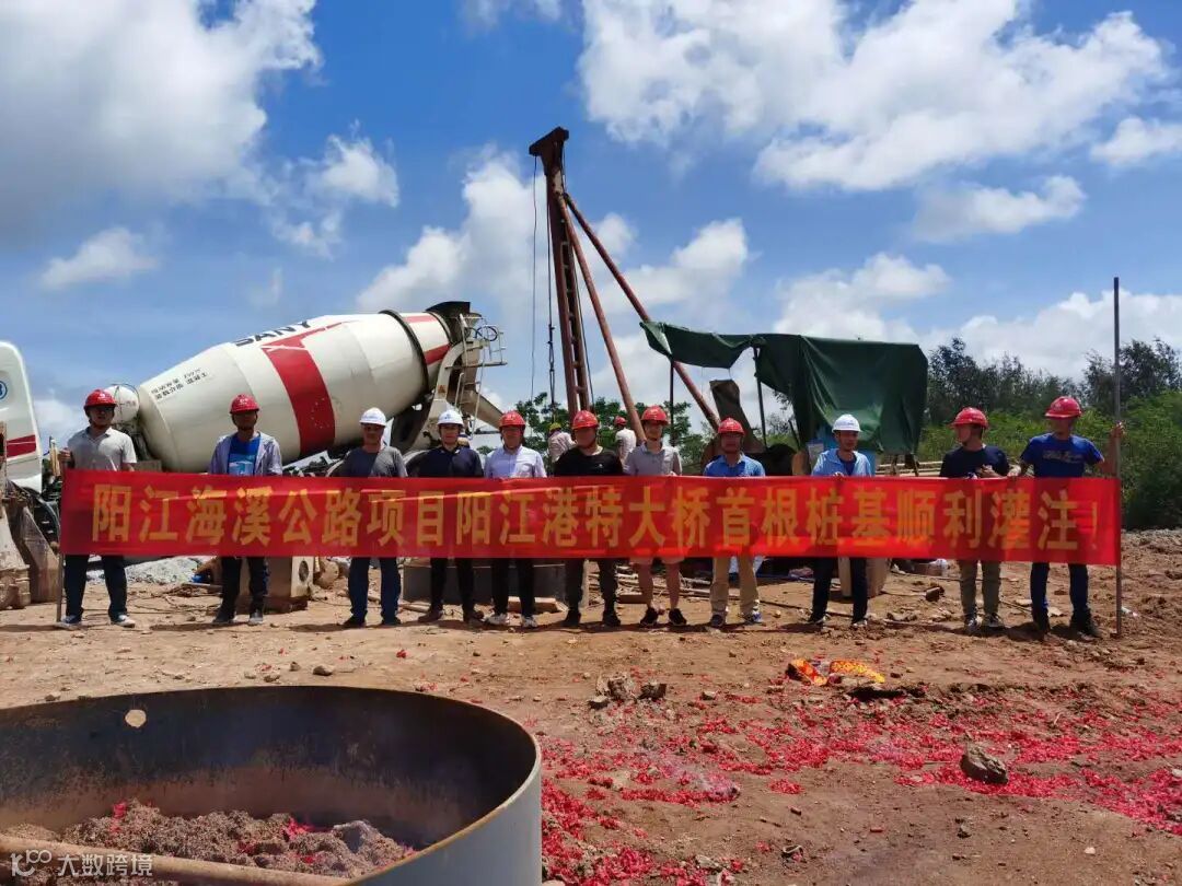 6月23日,保利长大承建的阳江海溪公路项目阳江港特大桥首根桩基顺利灌注!阳江海溪公路项目起于阳江平冈镇,终于阳西县溪头镇,接阳江山外东至海陵大堤段公路工程,全长约23.928km,其中阳江港特大桥长4777.2m。大桥桩基首件施工,有助于确定最优施工工艺和施工组织,为后续桩基施工总结经验,指导桩基大面积施工。
