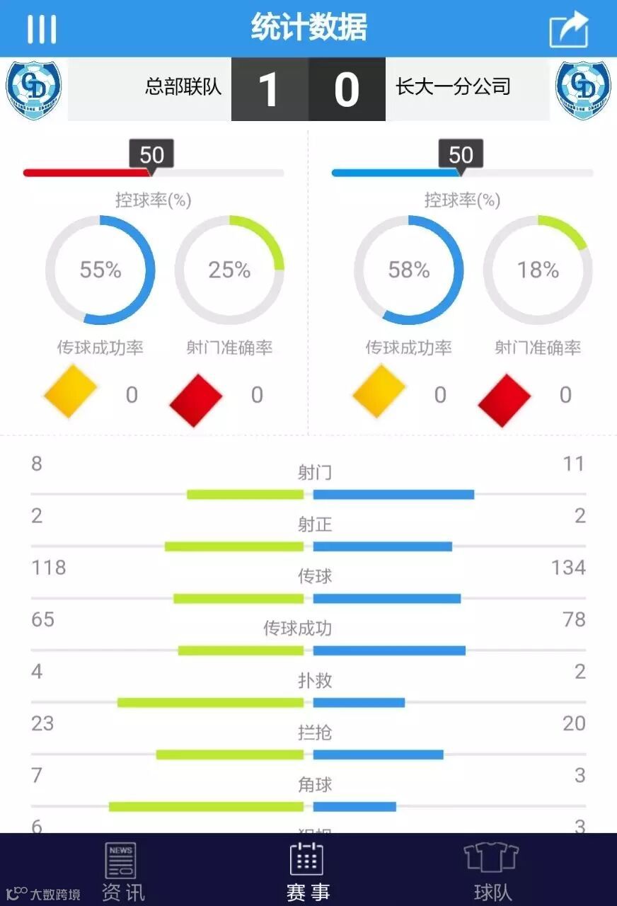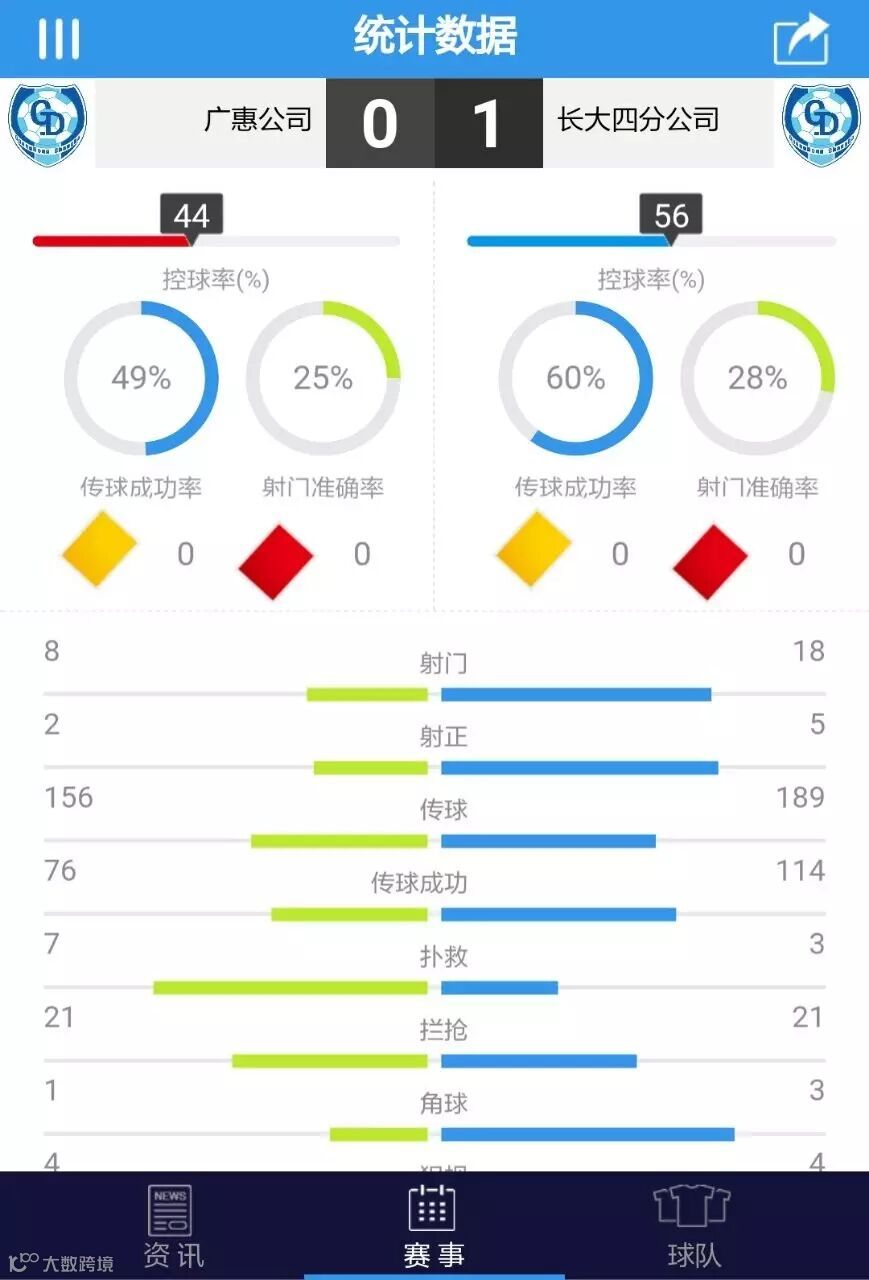 下半场,四分公司攻势加强,前场6号蒋振华及21号黄进率表现尤为活跃。而广惠公司由队长秦志平领衔的防线则发挥稳定,多次化解险情。第42分钟,四分公司蒋振华左边路内切后一脚爆射,击中横梁!比赛临近结束时,广惠公司禁区内拉人犯规,被吹罚点球。四分公司由蒋振华操刀主罚,劲射右侧命中,1:0!最终,四分公司取得两连胜,目前暂居积分榜榜首。