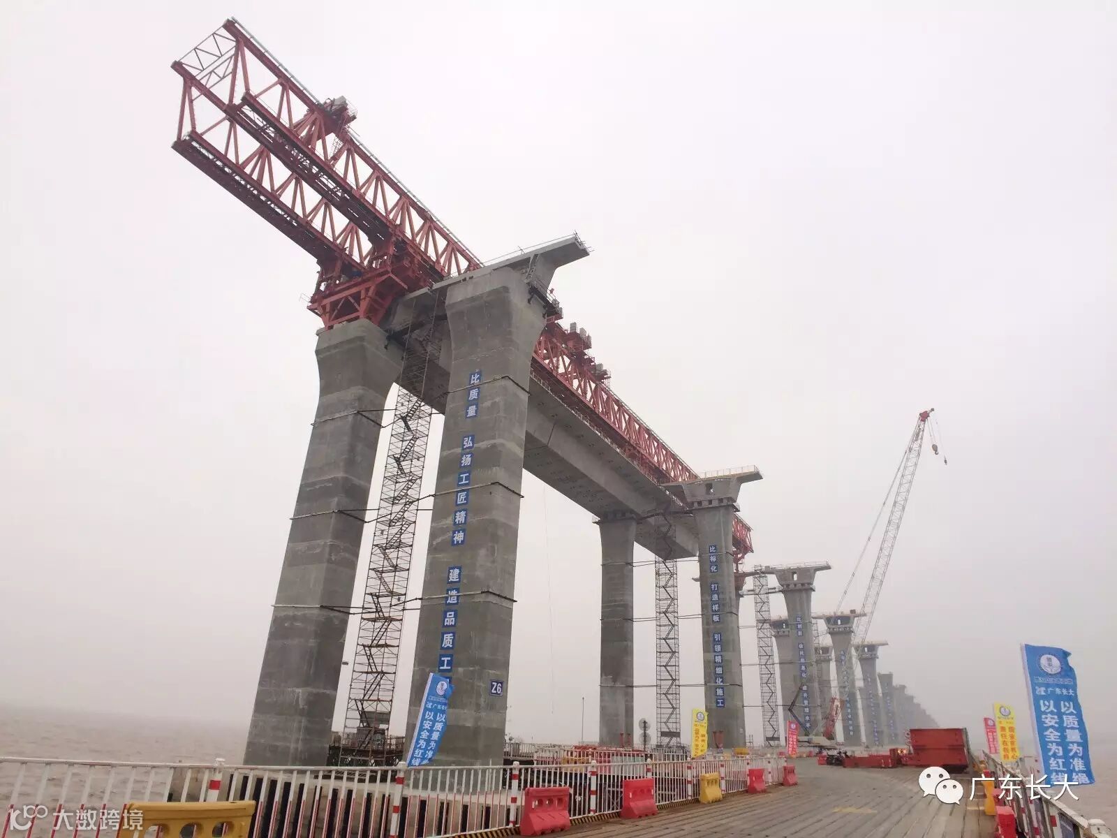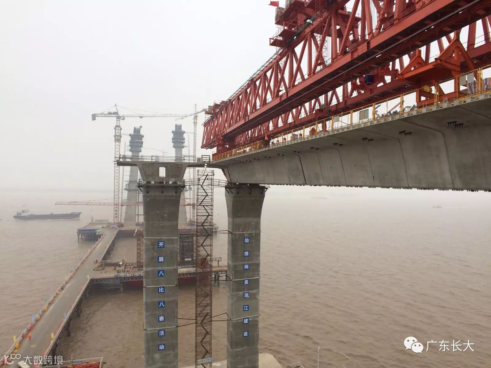 保利长大2月22日下午1点,广东省长大公路工程有限公司承建的台州湾大桥TS09标南岸非通航孔桥左幅第一跨节段梁成功合拢。当晚7点30分,桩基浇筑也顺利完成。