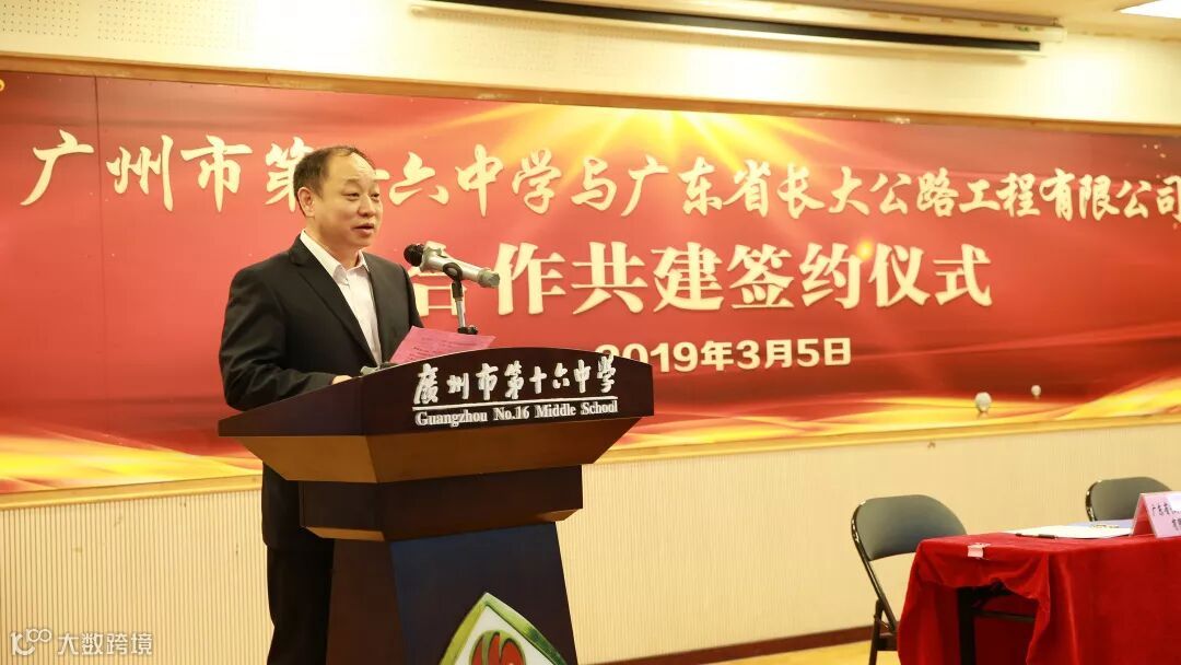 3月5日,广东省长大公路工程有限公司与广州市第十六中学合作共建签约仪式在广州市第十六中学礼堂举行,为探索校企双方开展多层次、多形式、多领域合作提供新途径。公司党委书记、董事长刘刚亮与广州市第十六中学校长杨霞代表双方签约,第十六中学副校长王勇主持签约仪式。