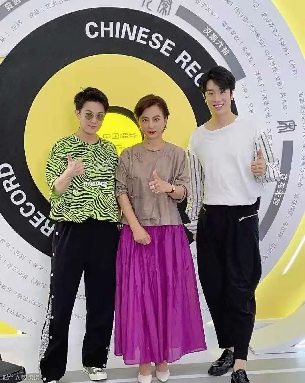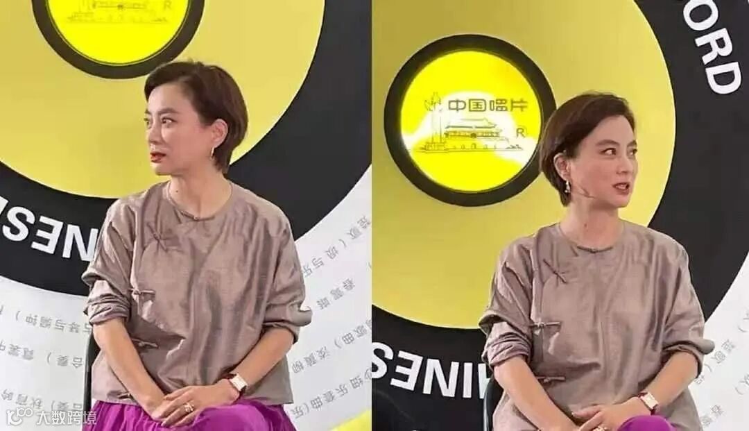 如果你和李玲玉年龄相仿,不妨来看看她这身棉麻衫配紫色百褶裙造