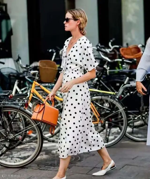 圆点元素最适合中老年女性了,它通常运用在连衣裙中,色彩一般不超两种,利用简洁明了的图案和简约配色,彰显出中老年女人该有的大气魅力,轻轻松松穿出气质范。为了更显气质,建议大家以黑白两色为主,穿起来不费力、不耗时。