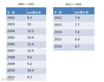 注:中国2002年至2016年的GDP增长率