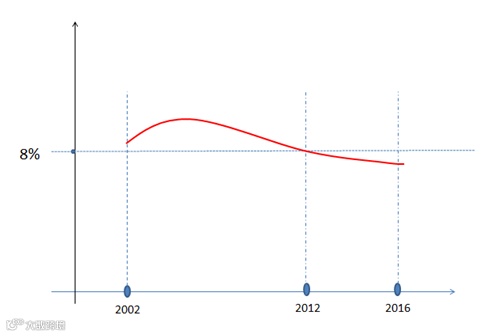 以2002年为起点,是因为从这一年开始中国GDP增长率驶入8%以上的快车道,持续了10年,直到2011年结束,然后增长率降低到了8%以下,持续了5年,直到现在。