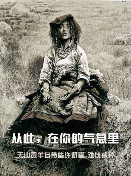 初遇她时,她还是一位冰清玉洁的牧羊少女,在天山西域高原上如蝴蝶仙子般赶着羊群飞来飞去,羊儿停下,她也止住脚步,抬起头,用那双黑珍珠般的明眸好奇地望着我这个狼狈不堪的流浪人,那一刻,我避之不及,极力躲闪她的眼神,并不是出于厌恶,只是唯恐我这不堪的形象亵渎了她那双明眸。