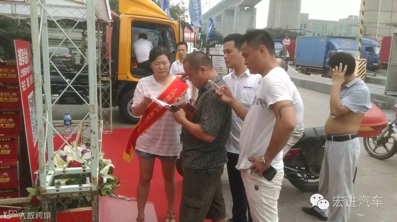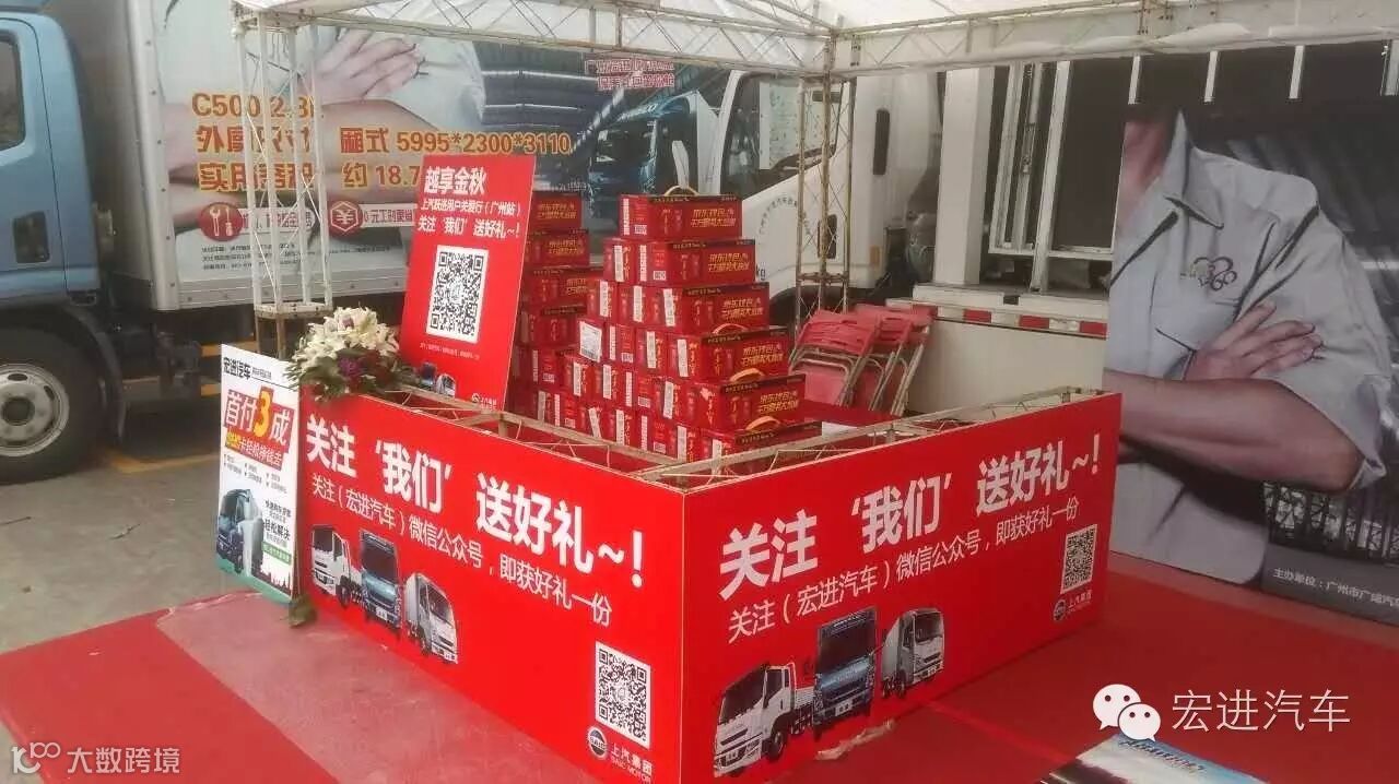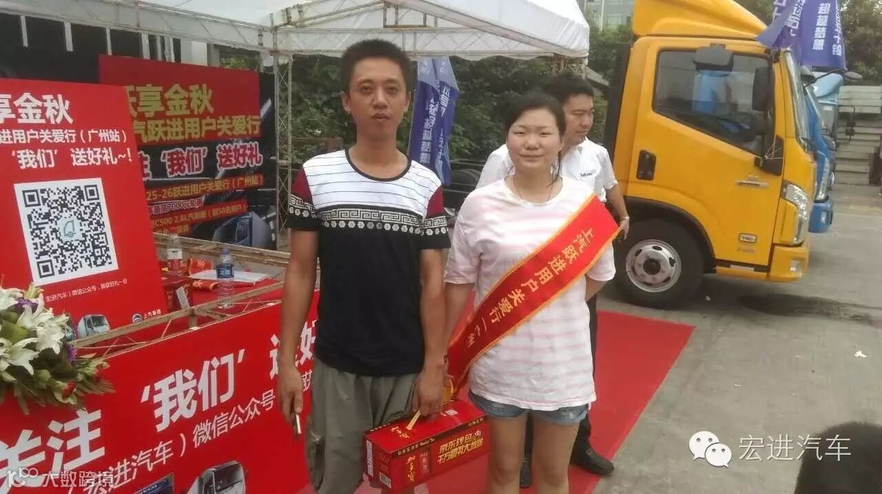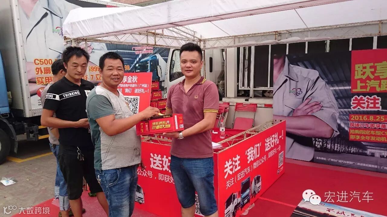 现场客户关注我们“宏进汽车”微信公众号的“送好礼”环节来回馈广大用户对上汽跃进高端轻卡的支持和信赖。