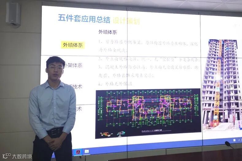 一期项目负责人王连星汇报惠州公司首批应用五件套项目情况,项目推进过程中实现了工程技术协同,在铝模深化阶段完成了设计优化做到了门顶过梁、小门垛等二次结构一次成型;栏杆杯口预埋,避免后期打凿;涉水部位反坎随结构一次浇筑,提供整体防水性能等。进度管理方面,在保质保量的前提下做到4天/层的建造速度,并梳理出管理提升建议及负面清单。