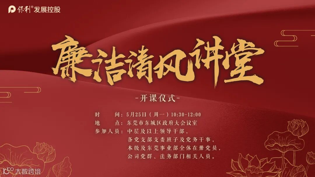 5月25日上午,由保利发展湾区公司、粤东公司党委联合举办的“廉洁清风讲堂”正式开课,分别邀请保利发展控股集团纪检监察办公室彭新哲主任作开班讲话及授课、外聘律所温爱英律师作主题分享。