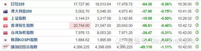 日经225指数再度转为下跌,盘中走低0.36%。香港恒生指数冲高回落,盘中下挫0.51%。澳大利亚股市跌超0.75%。