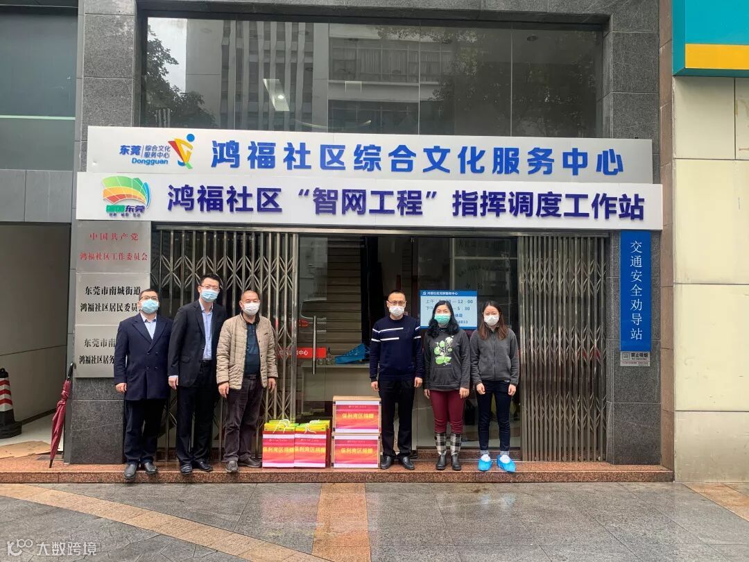 同时,东莞公司分队奔赴南城鸿福社区,慰问一线抗疫人员,紧急送上1200个口罩、2箱消毒水。鸿福社区梁书记对突击队雪中送炭表示感谢。