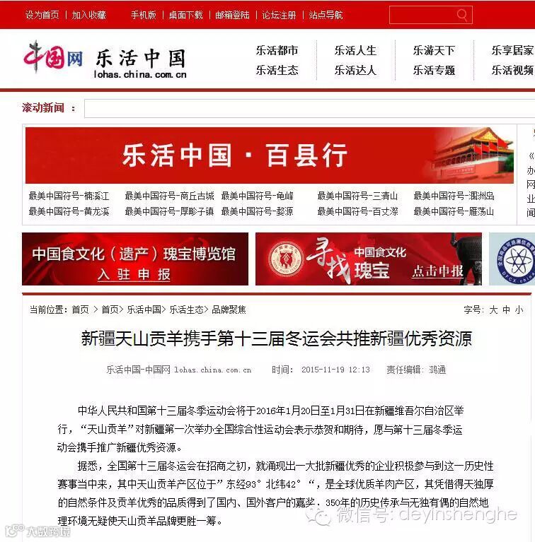 中国网、中国商报网、楚北网、中工网等纷纷对“天山贡羊携手第十三届冬运会”进行了报道